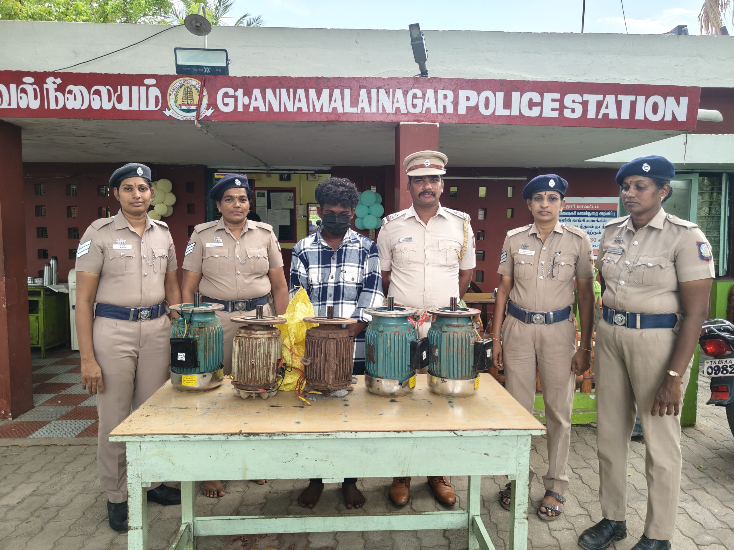 மேற்படி நபரிடம் இருந்து 5 மோட்டார்களும் இரண்டு மோட்டாரில் இருந்து பிரிக்கப்பட்ட செம்பு கம்பிகளும் பறிமுதல் செய்யப்பட்டது. மொத்த மதிப்பு 50,000.