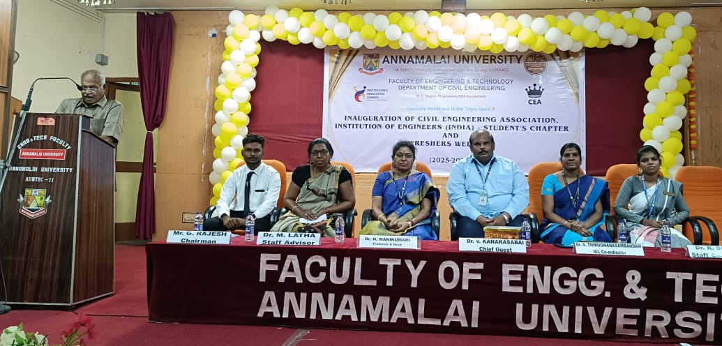 சிதம்பரம் அண்ணாமலை பல்கலைக்கழக கட்டிடவியல் துறையில் மாணவர்கள் கூட்டமைப்பு விழா (2025-26) கட்டிடவியல் துறைத்தலைவர் Dr.N.மணிக்குமாரி மற்றும் பேராசிரியர்கள் Dr.M.லதா, Dr.R.ஷீலா முன்னிலையில் நடைபெற்றது.